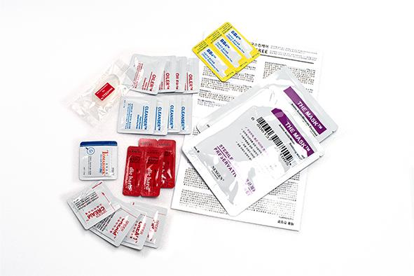 오일러, 클렌저, 미니셀과 다이하드 그리고  스파이더크림과 BB크림 마지막으로 미세침인 토마호크가 있고 마스크팩 2장이 새로워진 트레블키트안에 모두 들어가 있어요. 트레블키트안에 들어가는 구성제품의 함량과 수량은 위의 표와 같아요. 대부분의 제품이 각각 4개씩으로 셋팅되어 있고 무방부제 1회용이라 한번에 모두 사용가능한 양이라고 보시면 되세요. 위의 제품들은 모두 정품이며 넥스젠화장품은 방부제 대신 저렇게 1회용 멸균포장으로 모든 제품이 제조, 판매되고 있어요.