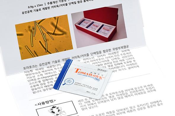토마호크는 샵전용 제품인 닌자더고스트의 홈케어 제품으로 동일한 성분에 미세침의 함량만 적은 주름, 탄력관리용 미세침 세럼이에요. 토마호크에는 거미줄과 거미독 단백질이 들어가 단일 EGF의 효과보다 월등한 효능을 기대할 수 있어요.