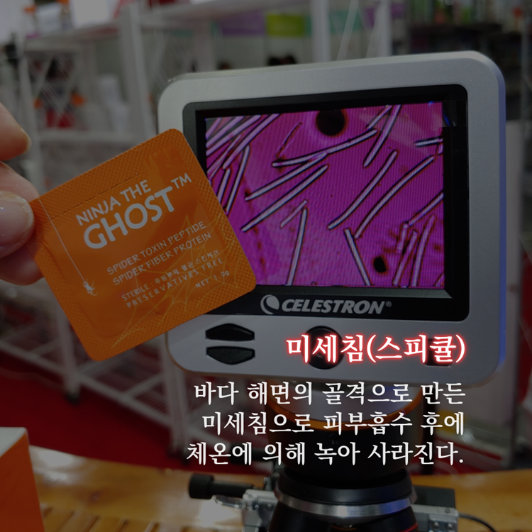 거미독/거미줄 단백질의 탄력, 미백 효과를 미세침을 이용하여 피부 진피까지 침투하게 하여 빠른 시간에 재생효과를 낼 수 있습니다.