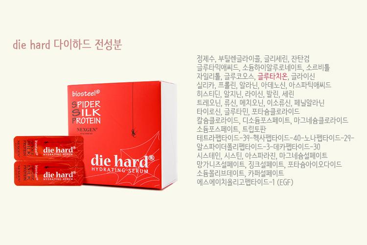 결국 다이하드의 글루타치온이 멜라닌의 합성과 응집을 방해함으로써 피부가 검게 되는 것을 예방한 셈이다.