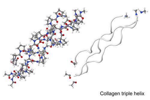 ○ 콜라겐은 3차원 구조의 거대분자이다.