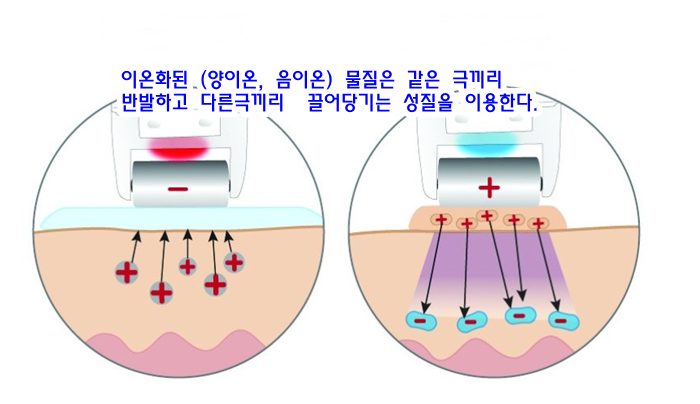 얻지만 양극을 적용하면 각질층이 단단해지는 수렴효과를 얻는다.